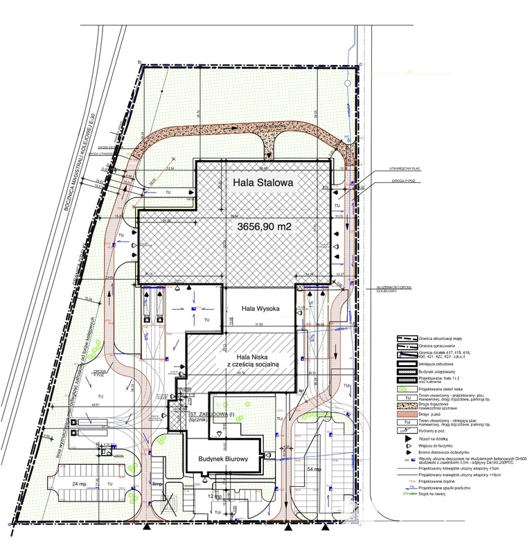 - Hala produkcyjno–magazynowa: 3816 m²